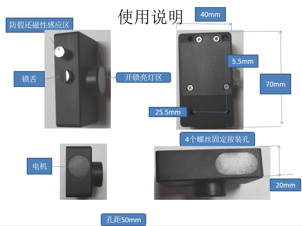 产品简介:产品说明: 规格尺寸: 宽40mm; 长70mm; 厚度仅:20mm. 产品重量:130g 1200豪安电池 1、应用描述:陪护椅智能锁,共享轮椅锁,应用于共享储物柜、共享篮球、无人便利店,省去传统快递柜……